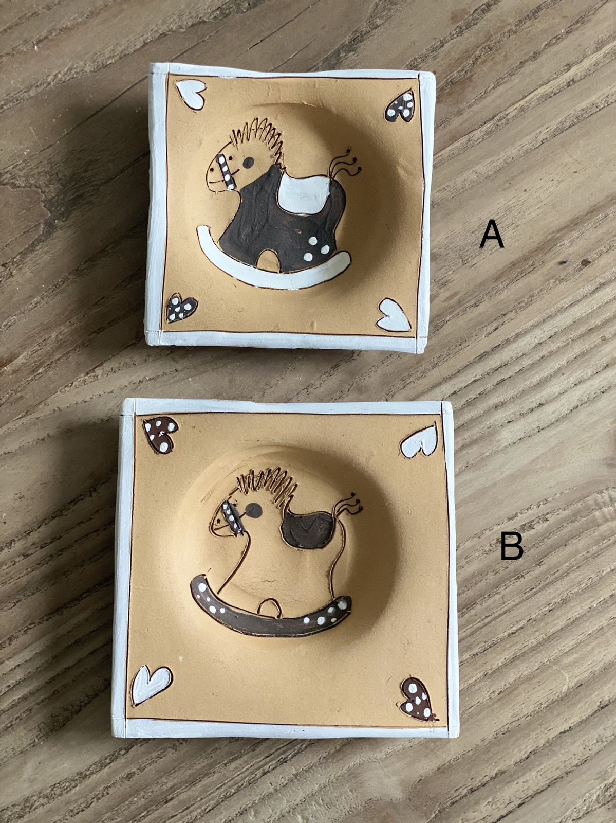 Keramický tácek, motiv houpací kůň