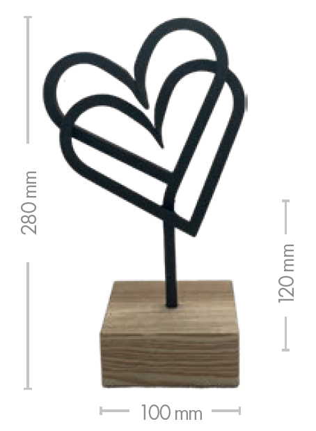 Výška 280mm, šířka 140mm. Rozměr dřevěného špalku 100x100mm.