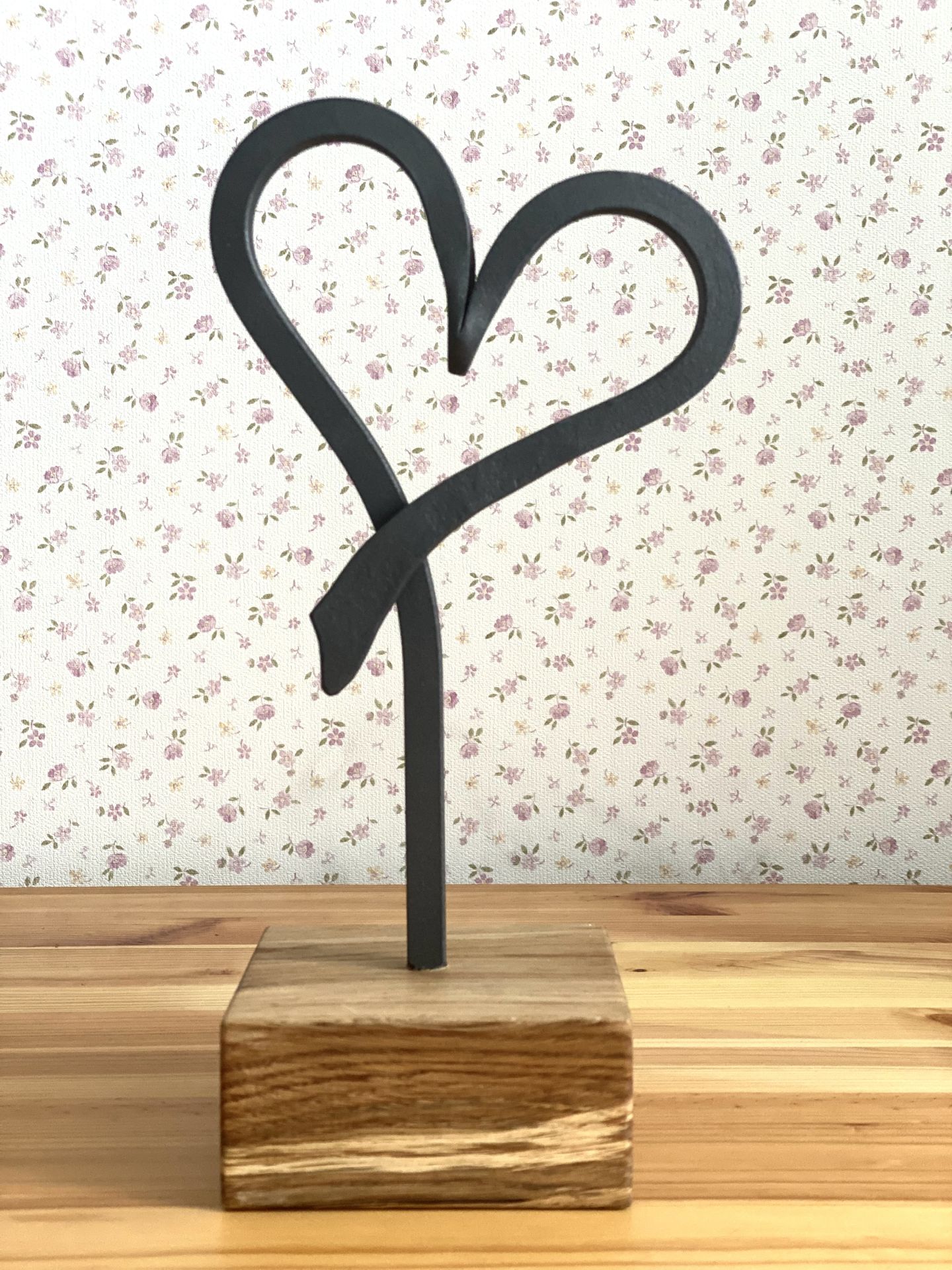 Ručně kovaná dekorace ve tvaru srdce v kombinaci se dřevem. Vhodné jako dárek na Valentýna.
