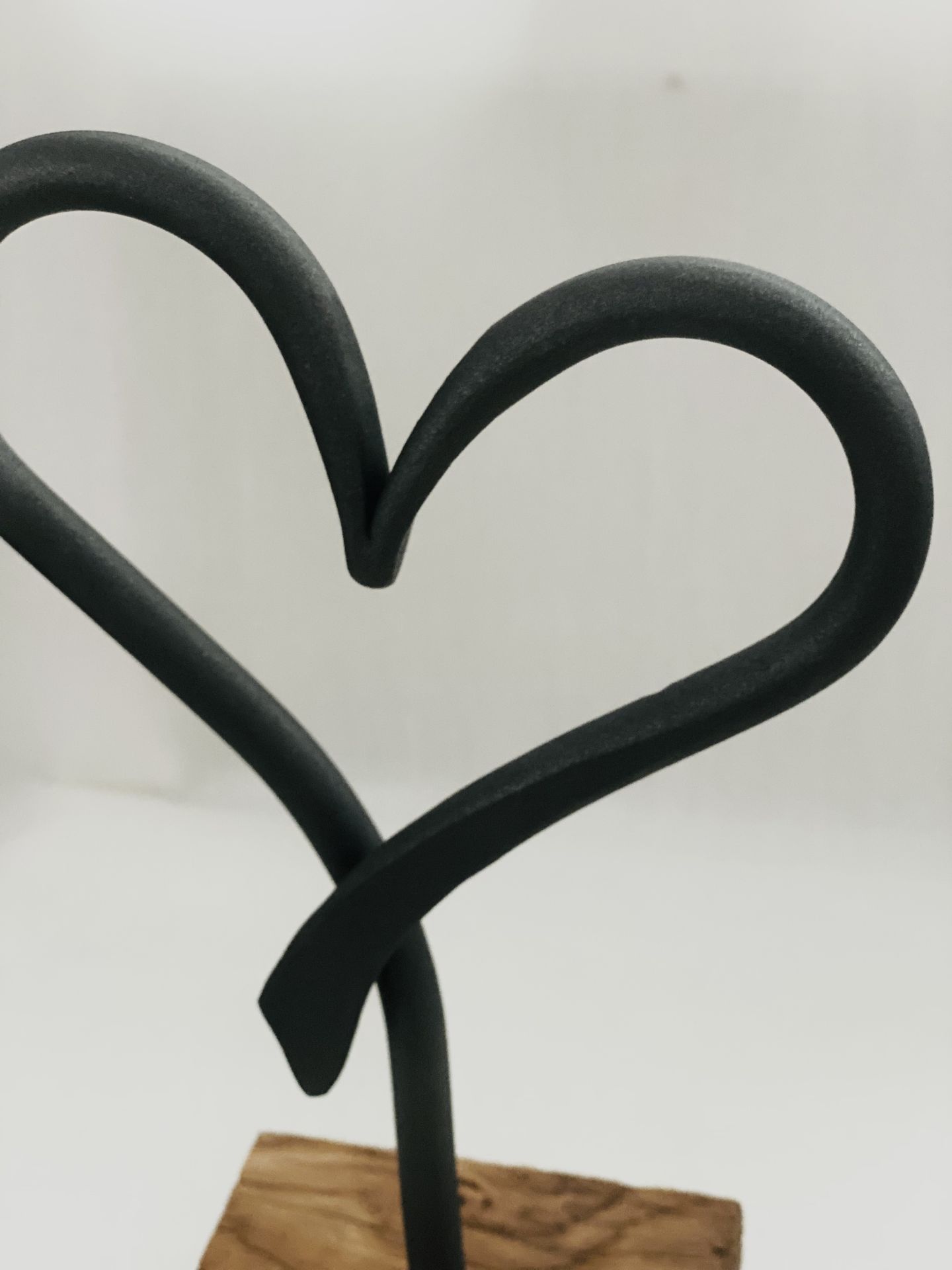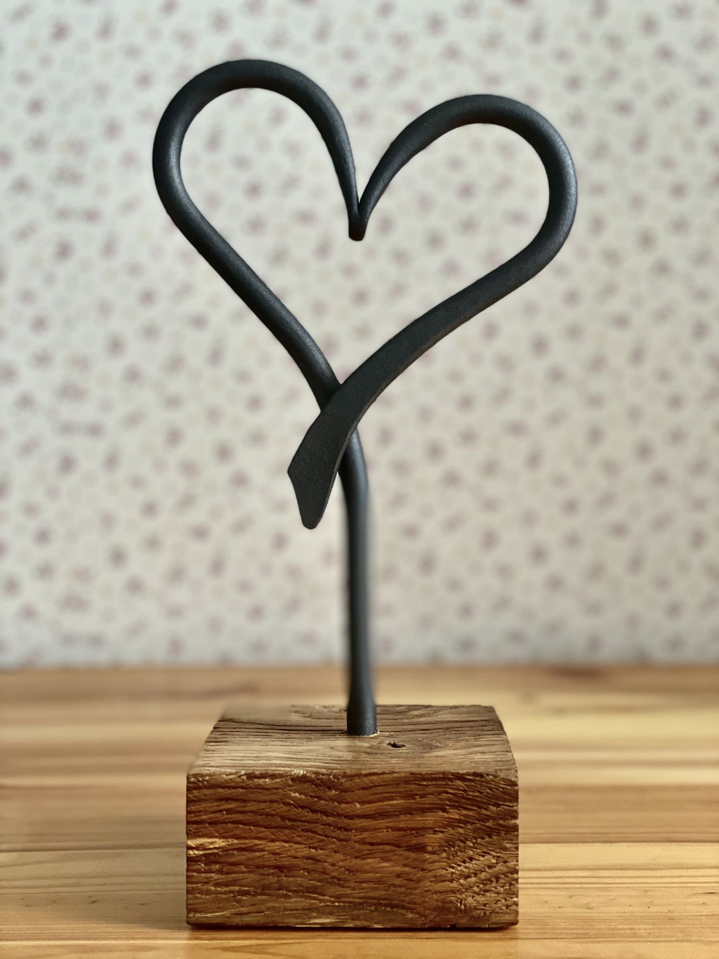 Ručně kovaná dekorace ve tvaru srdce v kombinaci se dřevem. Vhodné jako dárek na Valentýna.