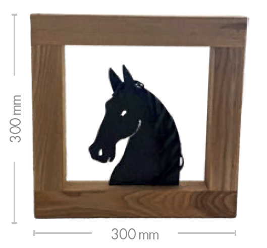 Kovaný kůň v dřevěném rámu