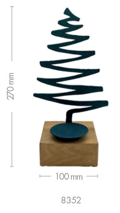 Kovaný strom na dřevěném špalku - svícen - modrá patina