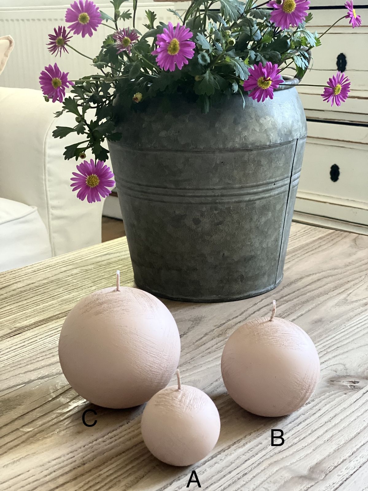 Ručně vyráběná svíčka ve tvaru koule.