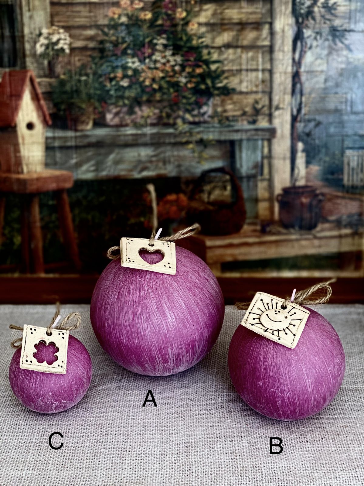 Svíčka je ozdobena keramickou destičkou na provázku.