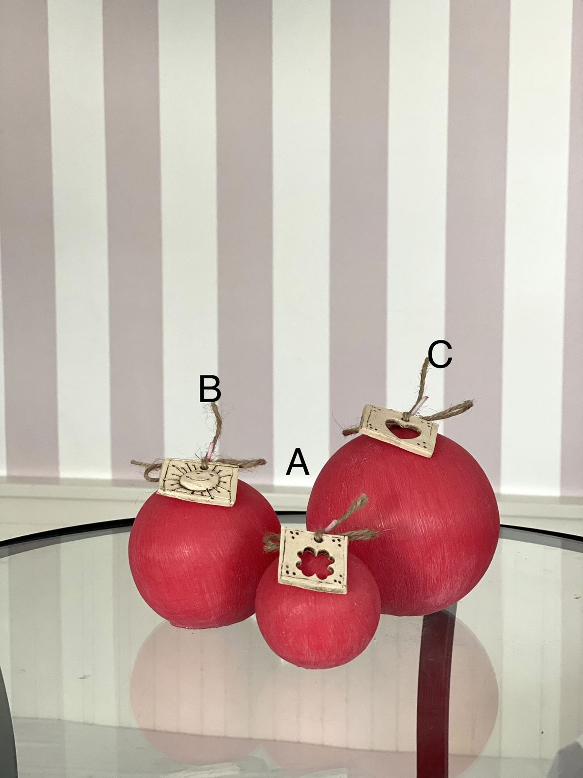 Svíčka je ozdobena keramickou destičkou na provázku.
