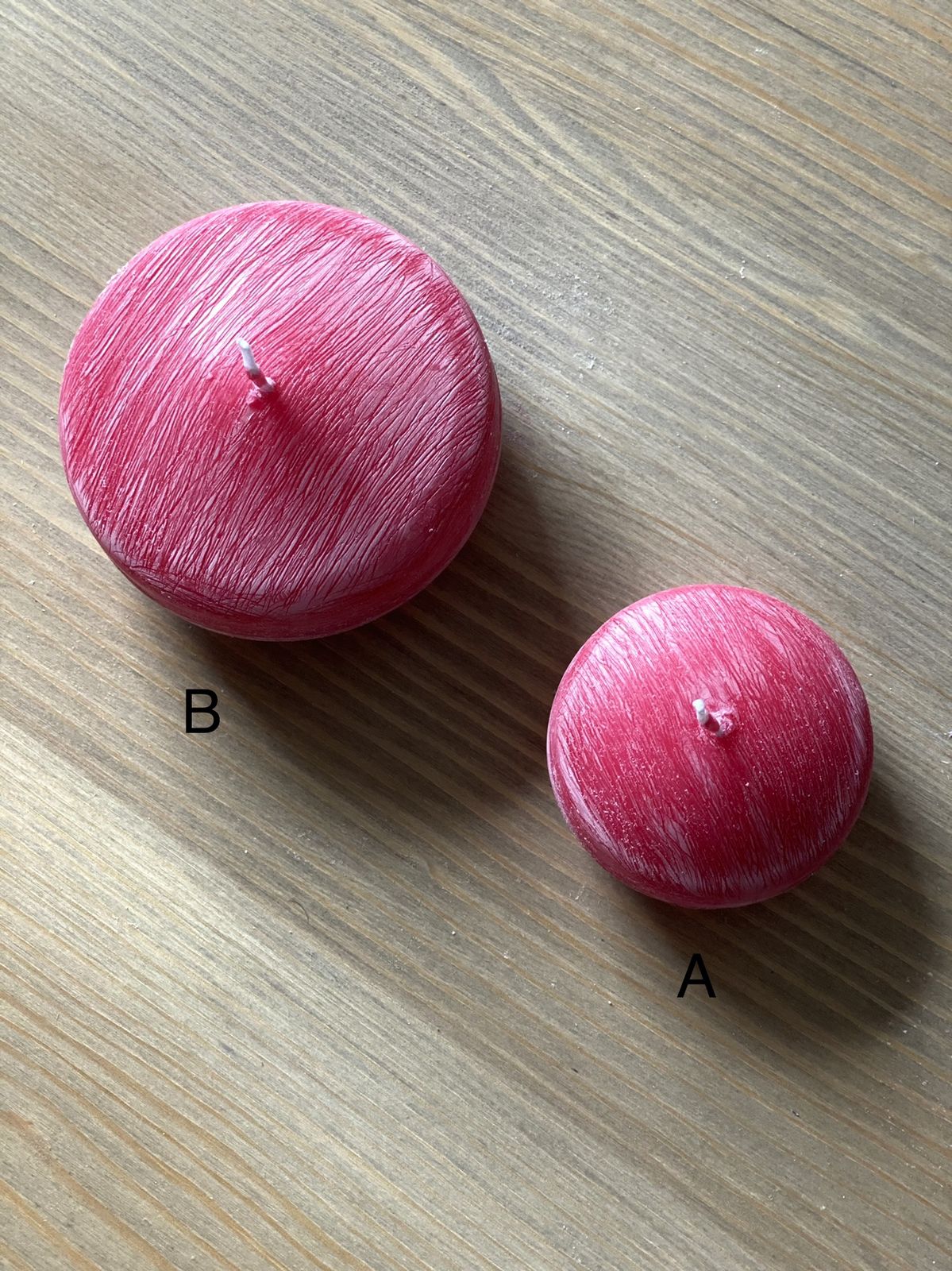 Ručně vyráběná svíčka ve tvaru čočky.