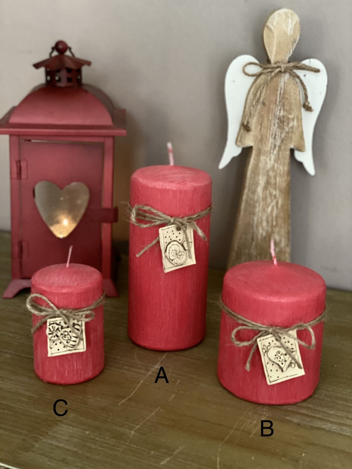 Svíčka je ozdobena keramickou destičkou na provázku.