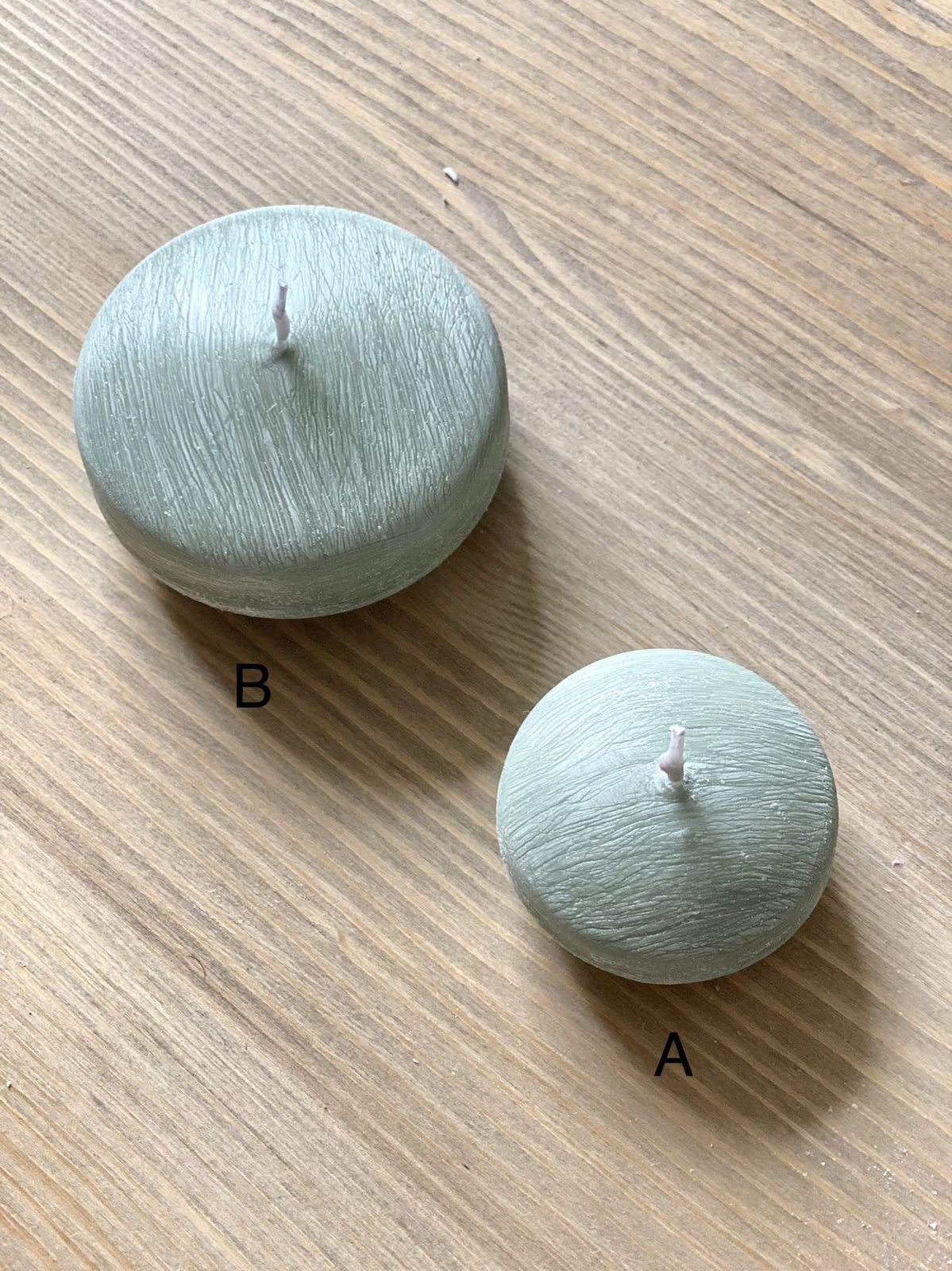 Ručně vyráběná svíčka ve tvaru čočky.