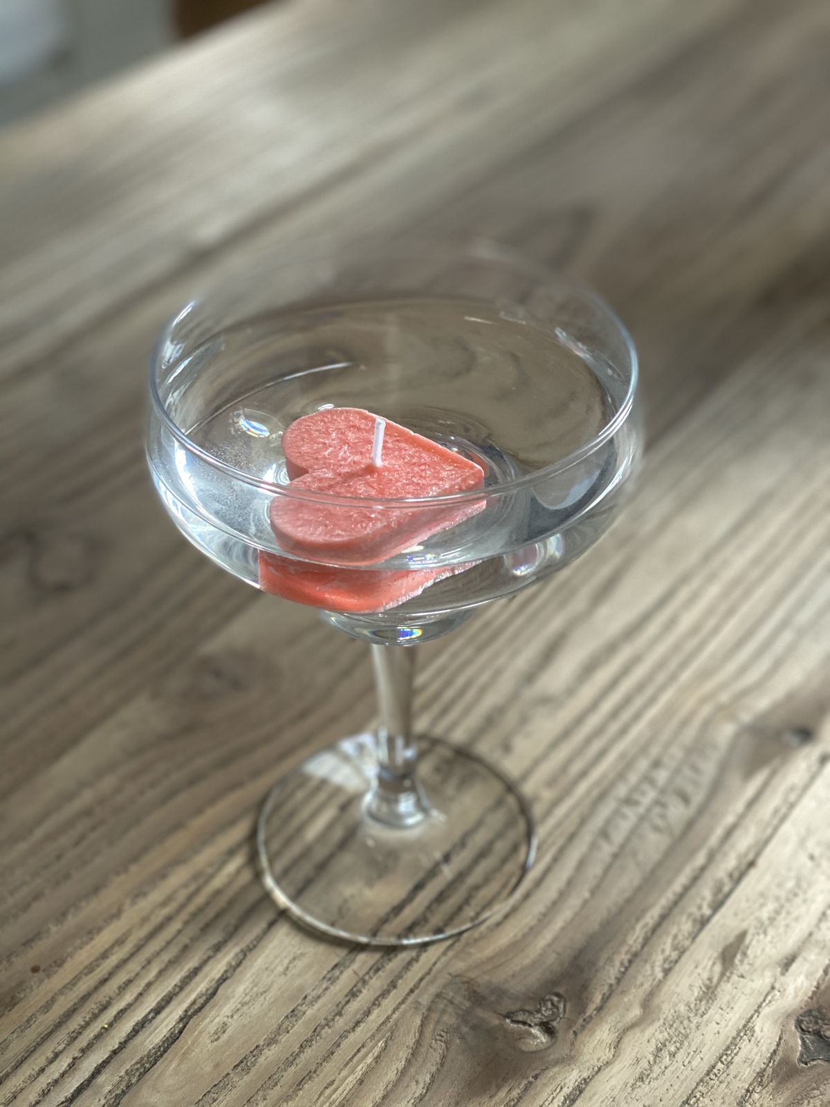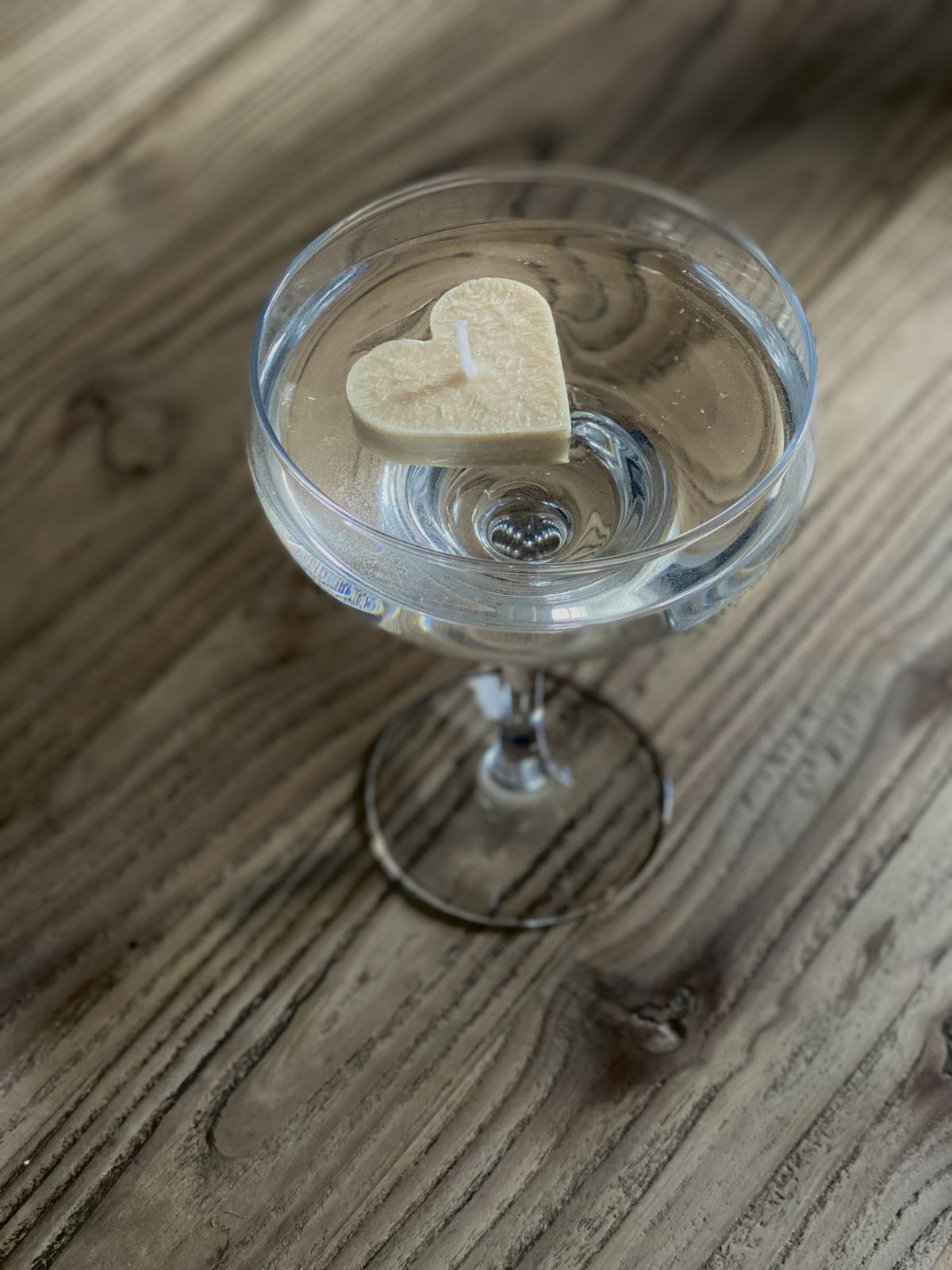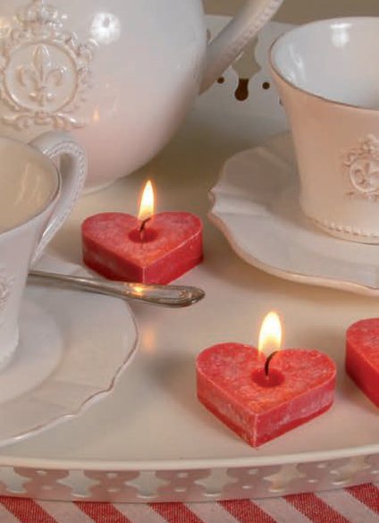 Kolekce svíček "Plovoucí srdíčka" je ručně zalévaná z palmového vosku. Doba hoření svíčky je 1,5h.
